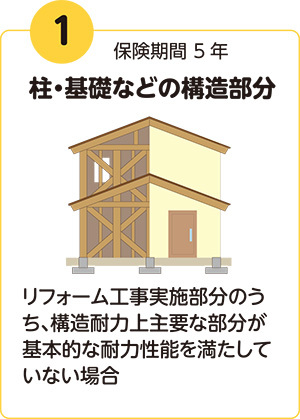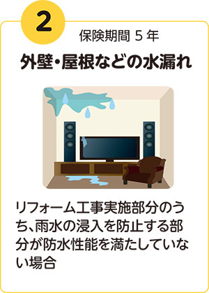 リフォーム引き渡し後に、工事でのミスや原因がもとで起こった欠点や欠陥が見つかった場合、その修補費用をまかなう保険です。構造改修や外装リフォームなどでは万が一に備えて、日リ協の会員店へ保険加入のご依頼をしてください。